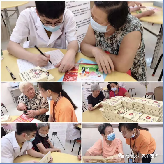 “福星医养集团东莞区域—东莞福星女儿家护理院与东莞家乐居养老服务中心于6月23号下午,在东莞市莞城街道市桥社区举办一场关于敬老、爱老、助老的义诊关怀活动,我院派出1名医生、2名护士、3名社工、1名康复师为社区长者提供了免费的义诊包括量血压、测体温、关怀慰问等服务。