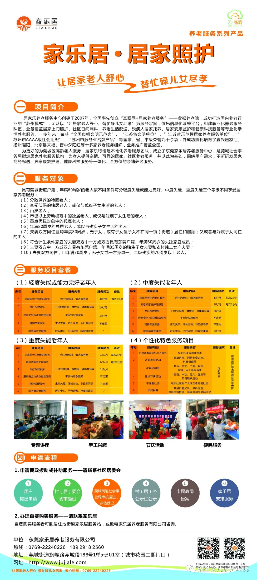 针对类似情况的长者,东莞家乐居养老服务中心特组健本地化养老服务团队,为老人提供亲情、可靠的居家、社区养老服务,并以此为基础,围绕用户需求,不断研发居家商务配送、居家康复护理。