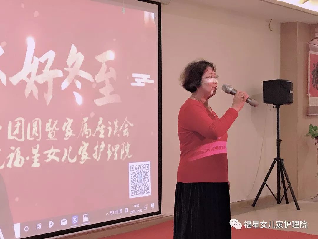 本次活动旨在发扬福星女儿家护理院“家文化”,长者+家属+我们=“一家人”,在这个普天同庆的日子里,我们团团圆圆在这里。其次,家属与我们多才多艺,全心表演,依循办院初心,一切为了老人,同行孝道。最后,通过座谈,与家属深入交流,共同为老人着想,更好服务老人。在此佳节,再次祝愿长者健康长寿,家属家庭和睦,万事如意。