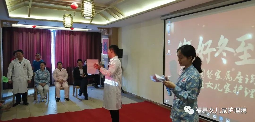 远至西北三千里,近到江南十六州,美景一时观不透,冬至还能会首,冬至是中国农历中,一个非常重要的节日,为了弘扬传统文化节日.也让大家感受到,来自集体的温暖和团结,在这个寒意阵阵的冬日里,我们福星女儿家护理院特意组织了本次冬至团圆暨座谈会。