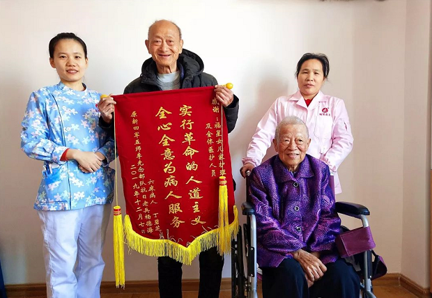长者和家属送来的锦旗,写着“实行革命的人道主义,全心全意为病人服务”十八个大字,这将是一个任重道远的任务,也是一份很重大的责任。长者和家属们的认可将是激励我们继续为这份所热爱的事业付出更多耐心,为长者们提供更好服务的强大动力。也是一种启示,不仅要对长者进行身体健康的关怀,心理健康的关怀也至关重要。