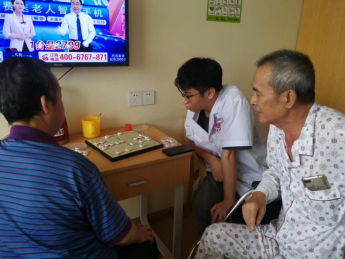 康娱活动就是指:针对老年人的心里及生理特点,在社会工作者及护理员们的协助、辅导下,通过语言交谈、肢体活动、休闲娱乐等活动形式开展的各类活动,以满足老年人心里和生理的需要,促进其健康,提高他们的生活质量。