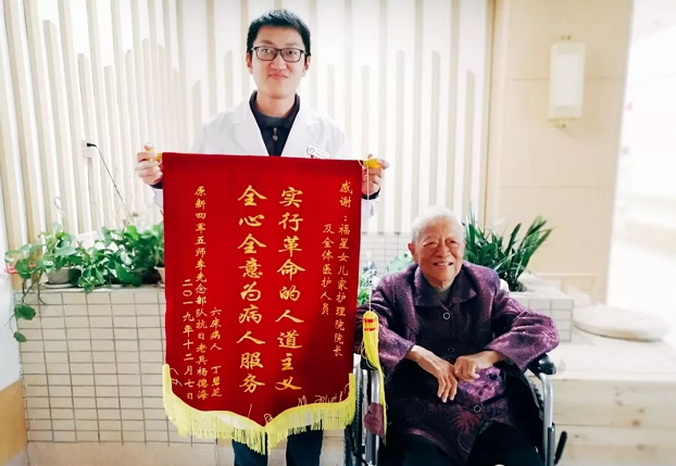 长者和家属送来的锦旗,写着“实行革命的人道主义,全心全意为病人服务”十八个大字,这将是一个任重道远的任务,也是一份很重大的责任。长者和家属们的认可将是激励我们继续为这份所热爱的事业付出更多耐心,为长者们提供更好服务的强大动力。也是一种启示,不仅要对长者进行身体健康的关怀,心理健康的关怀也至关重要。