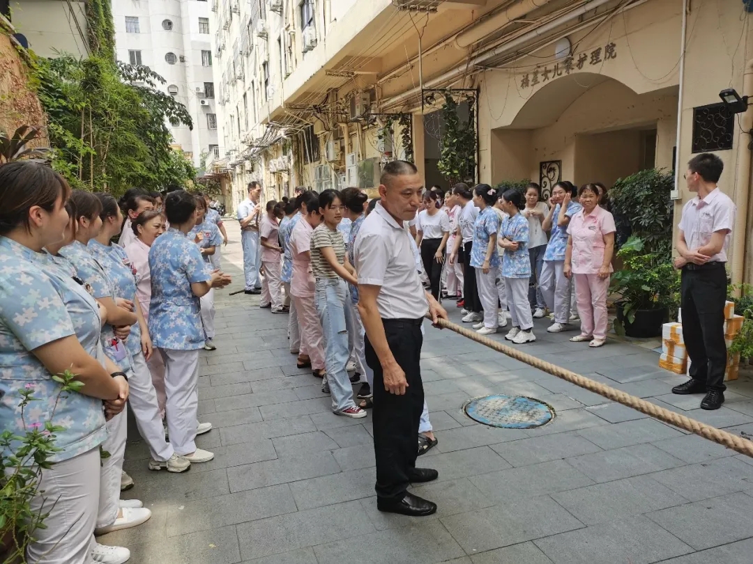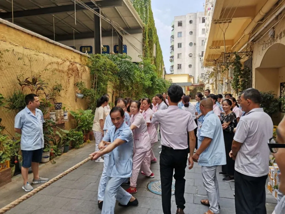 为展示新时代养老护理机构医护、行政团体的团队风采,进一步加强我院的文化建设,调动院内员工的积极性,丰富业余生活,我院举行一场拔河与趣味游戏比赛。
