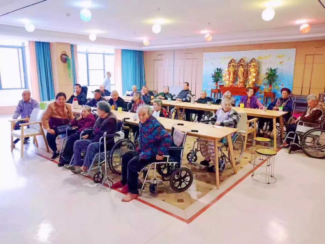 对部分长者来说,看着电视或者跟着我们的工作人员一起做还是比较有难度的。因为部分老人的眼睛已经没有年轻的视力,部分老人的手也不太灵活,这就是需要我们工作人员的辅助,在他们手把手的教学下,争取让全部长者都能一起动起来,整个活动厅都充满了青春与夕阳活力。