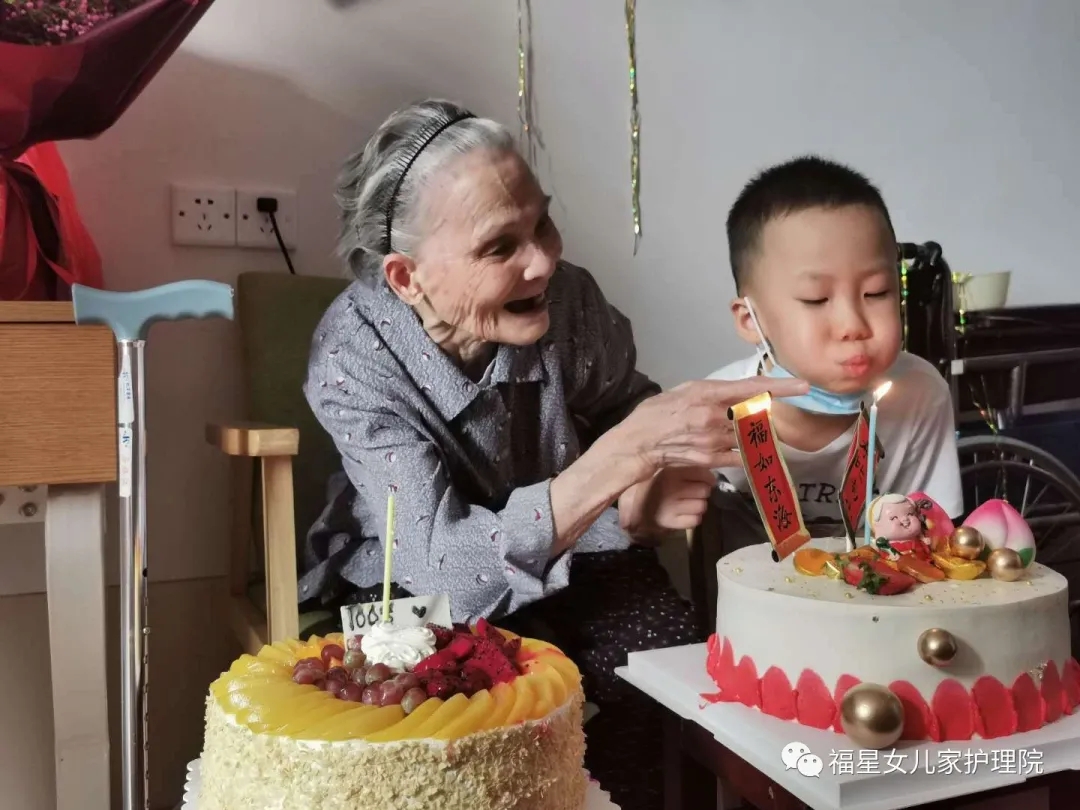 生日会其实是一个非常有纪念意义的日子,在我们小时候的生日,无非就是感觉终于有蛋糕吃了,终于有礼物收了,但是对于老人家,对于我们养老护理人来说,通过这个生日会,能让老人家在我院有归属感,知道自己是被尊重和重视的,让老人感受到福星女儿家的亲切。