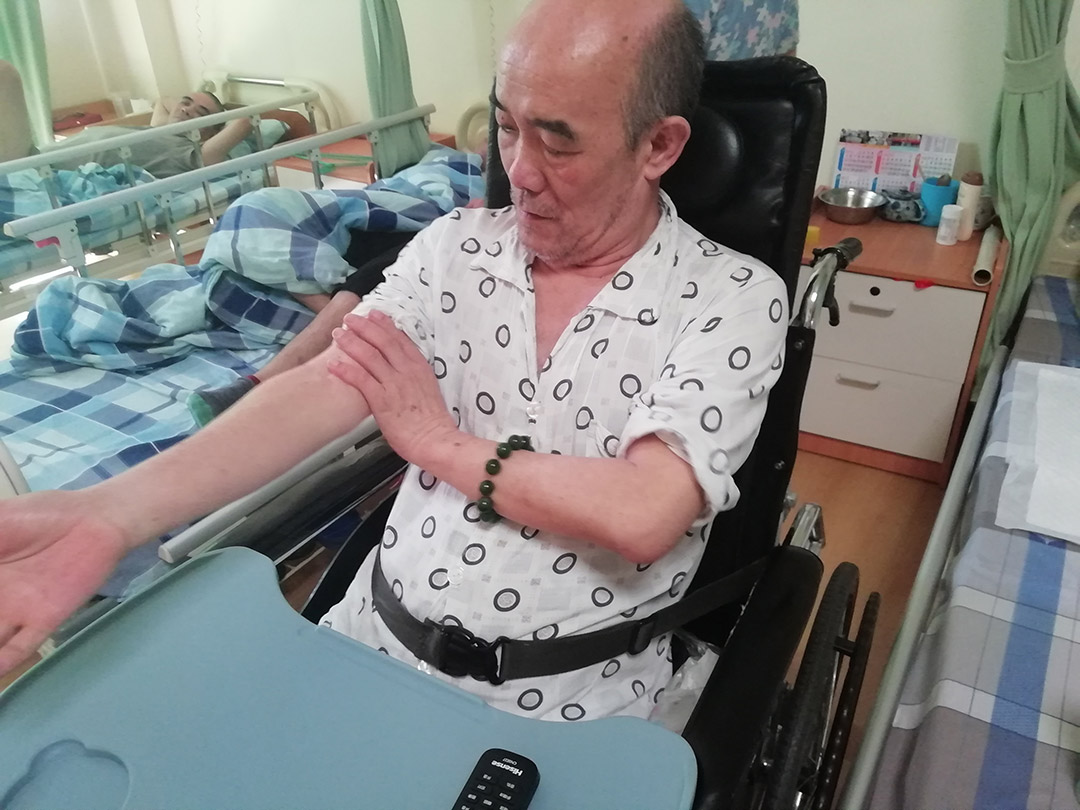 2、运动间隙用枕垫、木架维持肢体功能位,防止上肢屈曲等畸形。