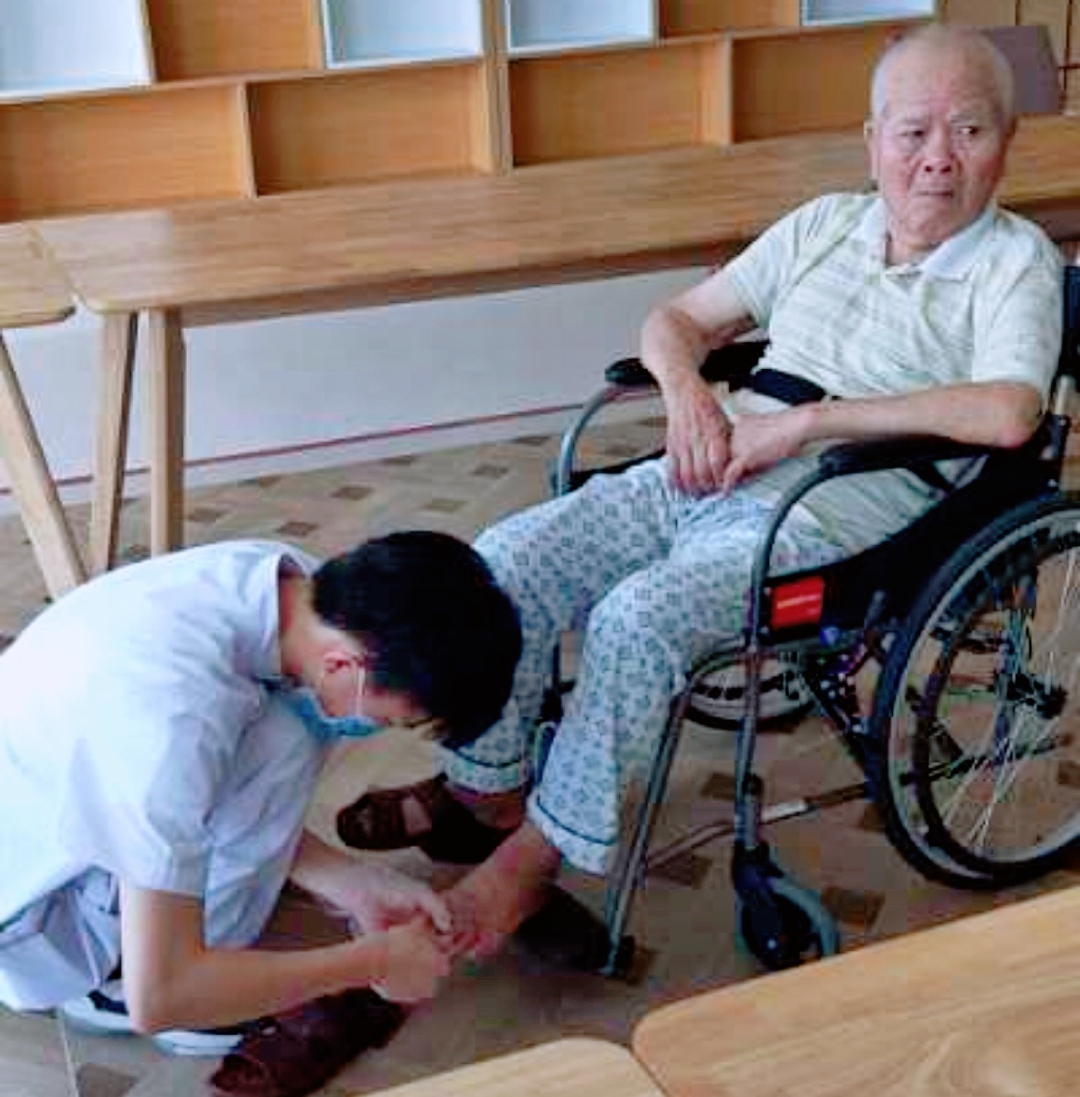 护士姐姐怕老人家的脚