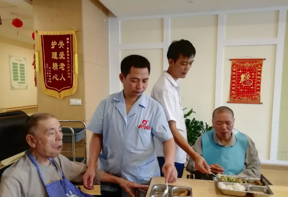 到11点多午饭时间,有些同伴不方便自己吃饭,护理员会协助我们吃饭。