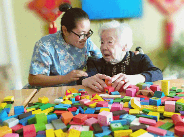 护理员们在日常生活照料(穿衣,洗浴,喂饭等)方面为长者们精心服务,在娱乐方面也为长者们带来欢乐,让长者们感受到陪伴的温暖。