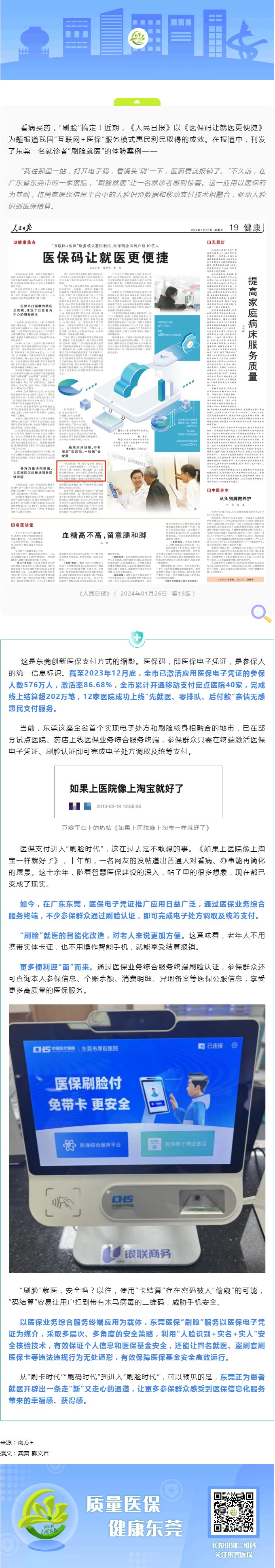 获人民日报关注!东莞“刷脸就医”,让便利迎“面”而来